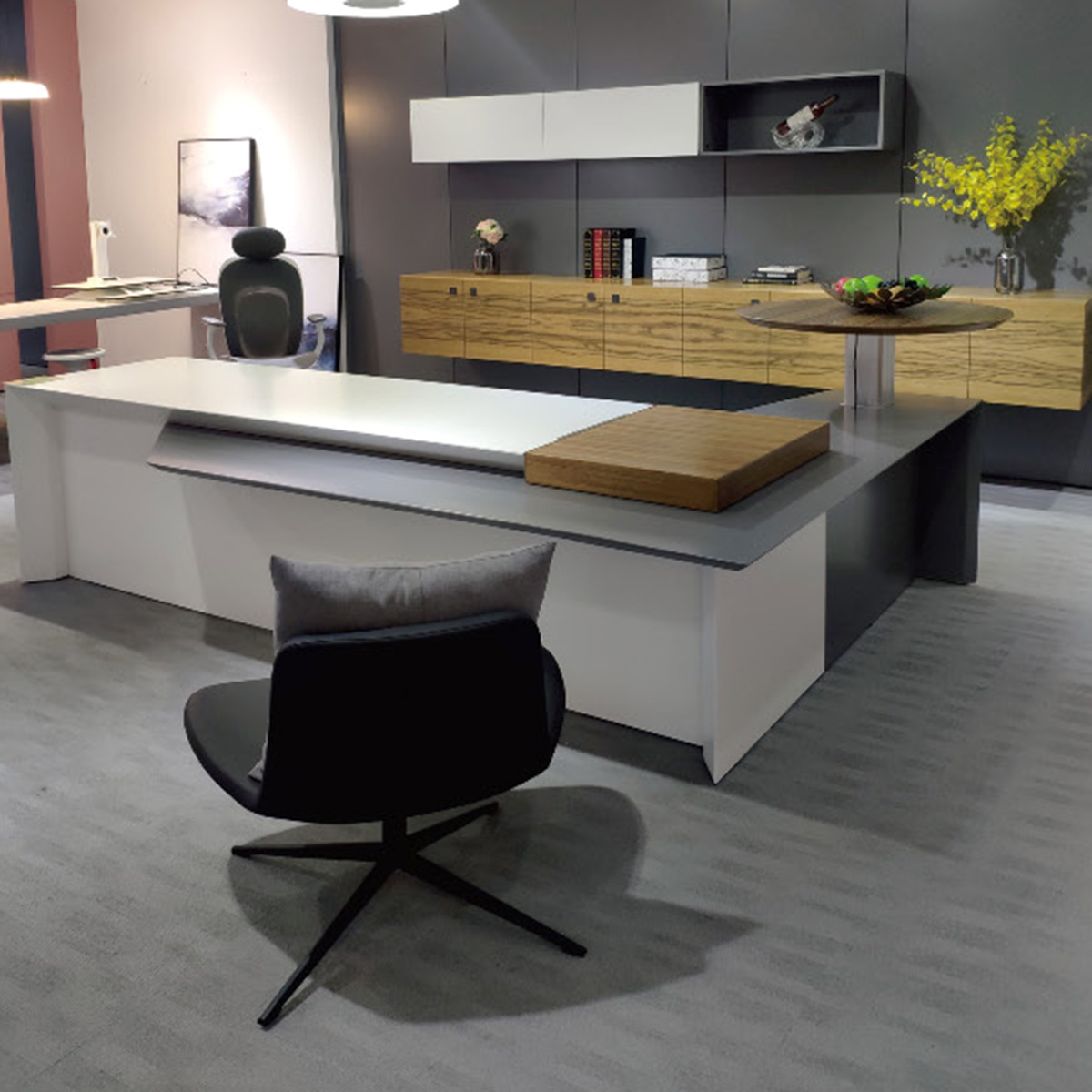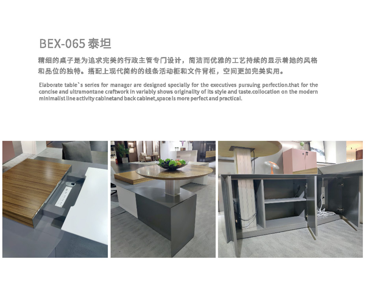 精細(xì)的桌子是為追求完美的行政主管專門設(shè)計(jì),簡潔而優(yōu)雅的工藝持續(xù)的顯示著她的風(fēng)格和品位的獨(dú)特。搭配上現(xiàn)代簡約的線條活動(dòng)柜和文件背柜,空間更加完美實(shí)用。