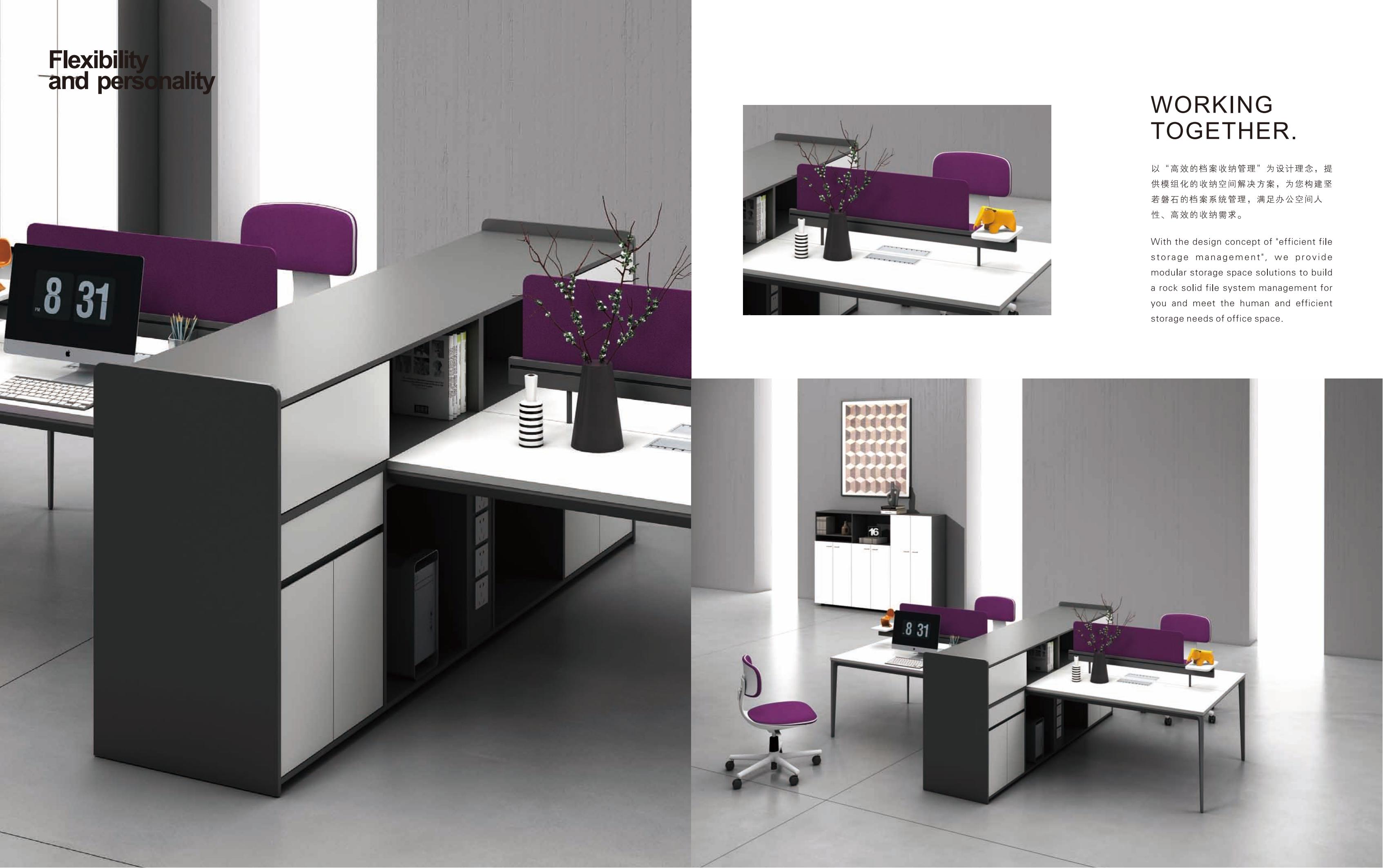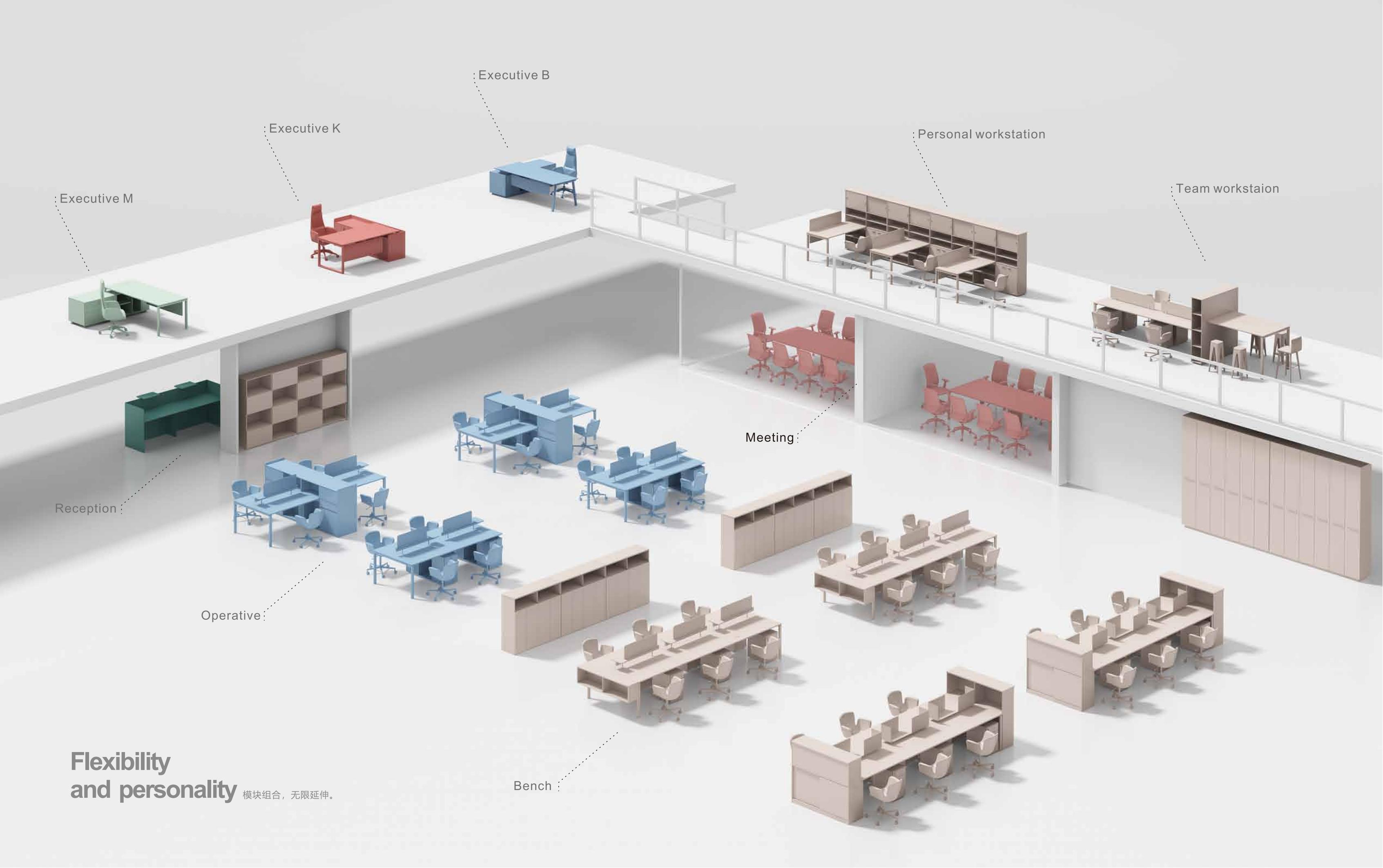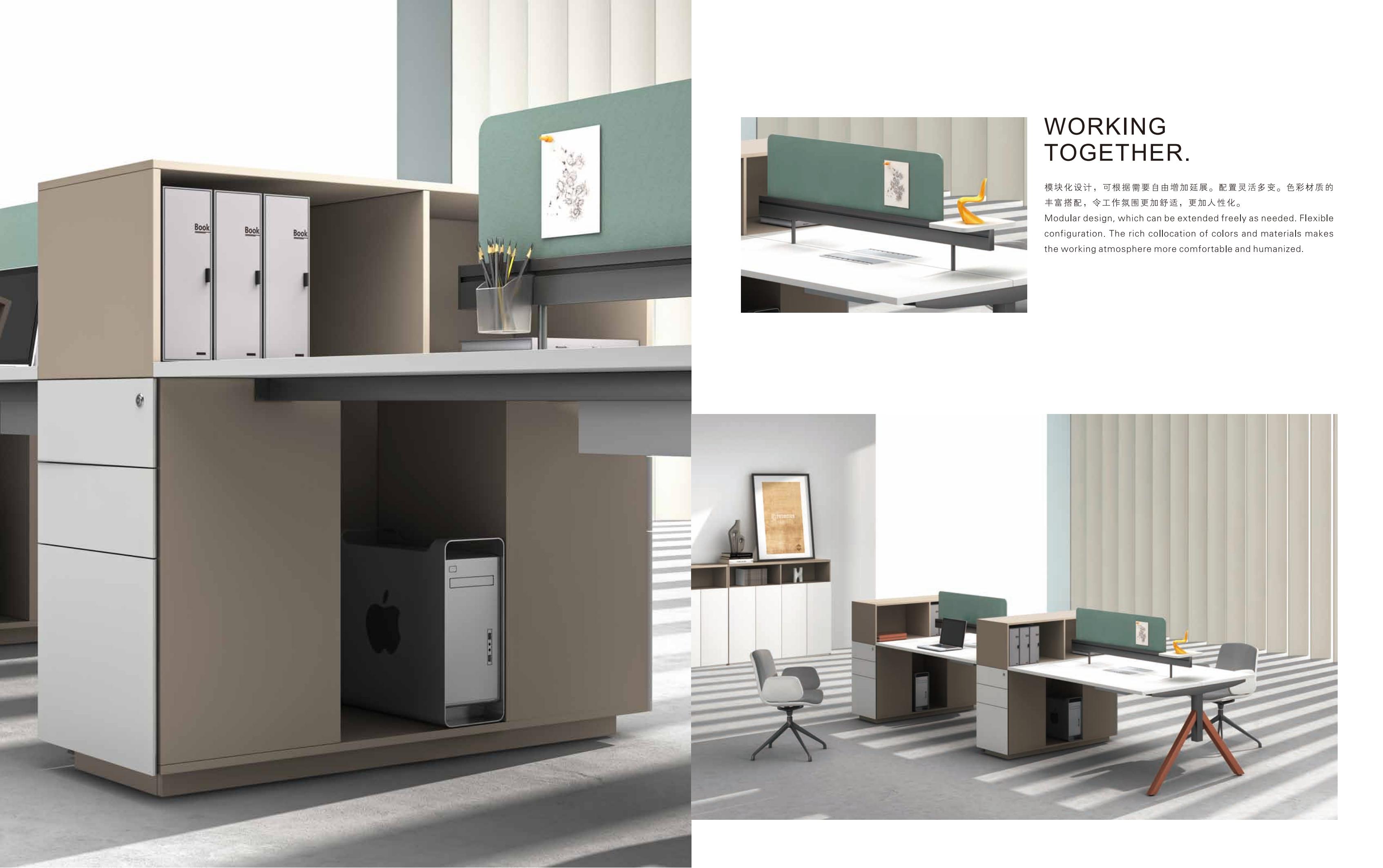 可收納辦公桌采用模塊化設(shè)計(jì),可根據(jù)需要自由增加延展。配置靈活多變,色彩材質(zhì)的豐富搭配,令工作氛圍更加舒適,更人性化。