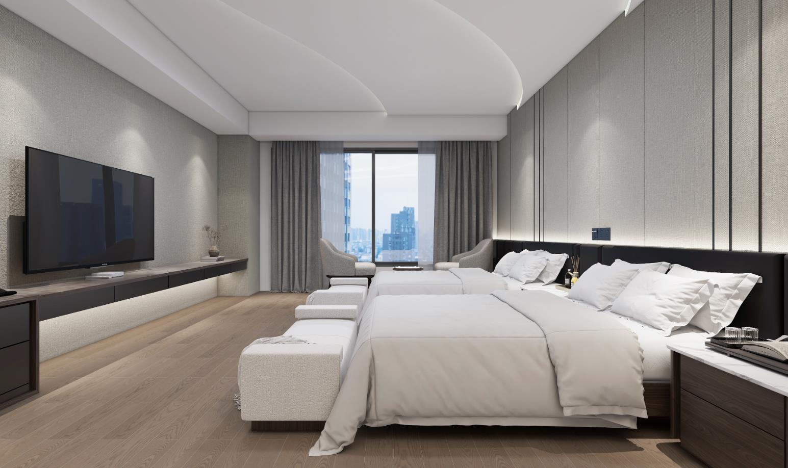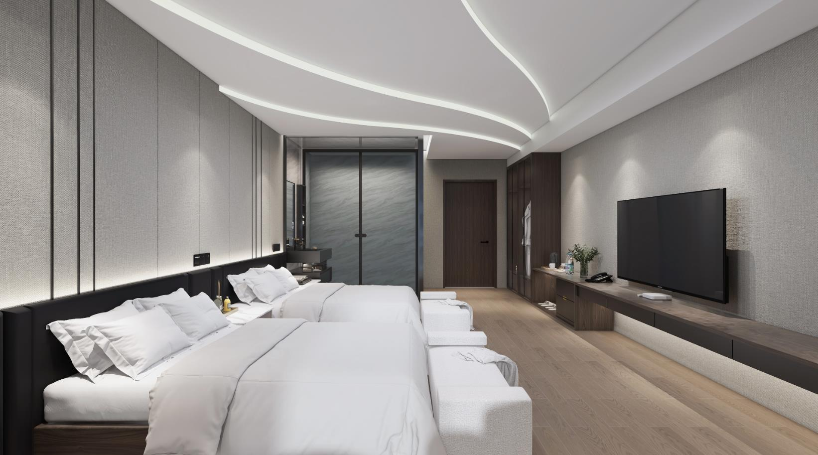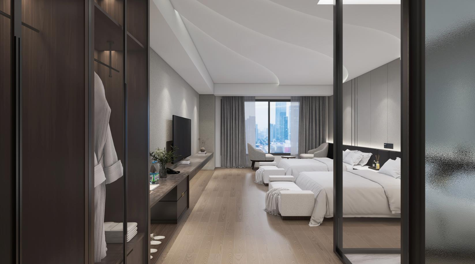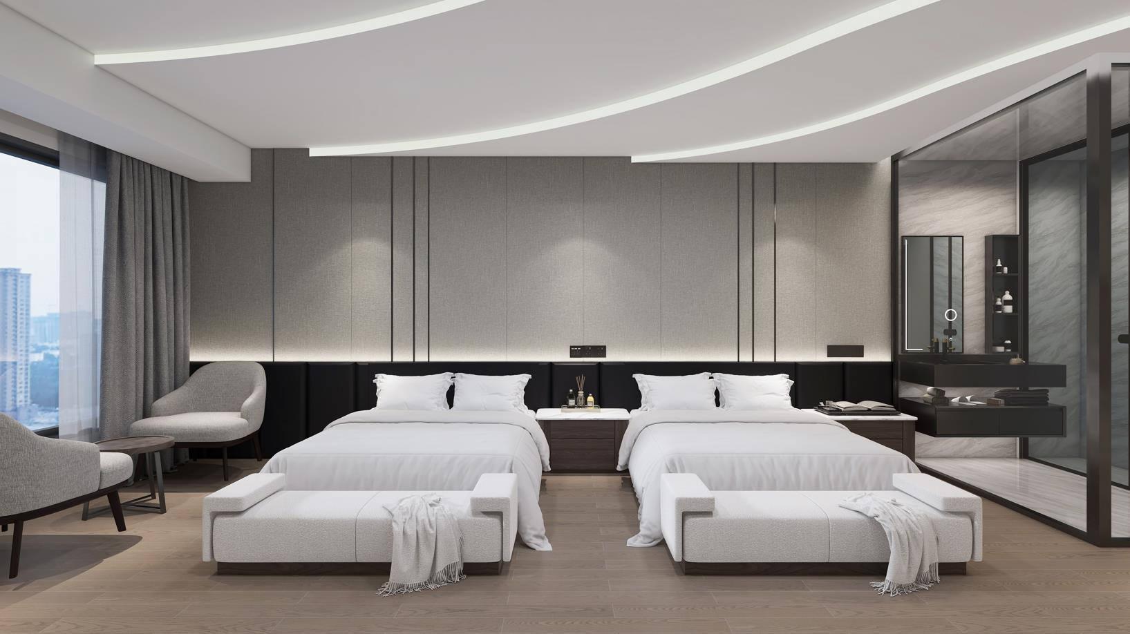 ??簡約和現(xiàn)代感:商務酒店注重簡潔、現(xiàn)代的裝修風格,以創(chuàng)造一個專業(yè)、清爽的氛圍。中性色調如灰色、白色和黑色常常占主導地位。