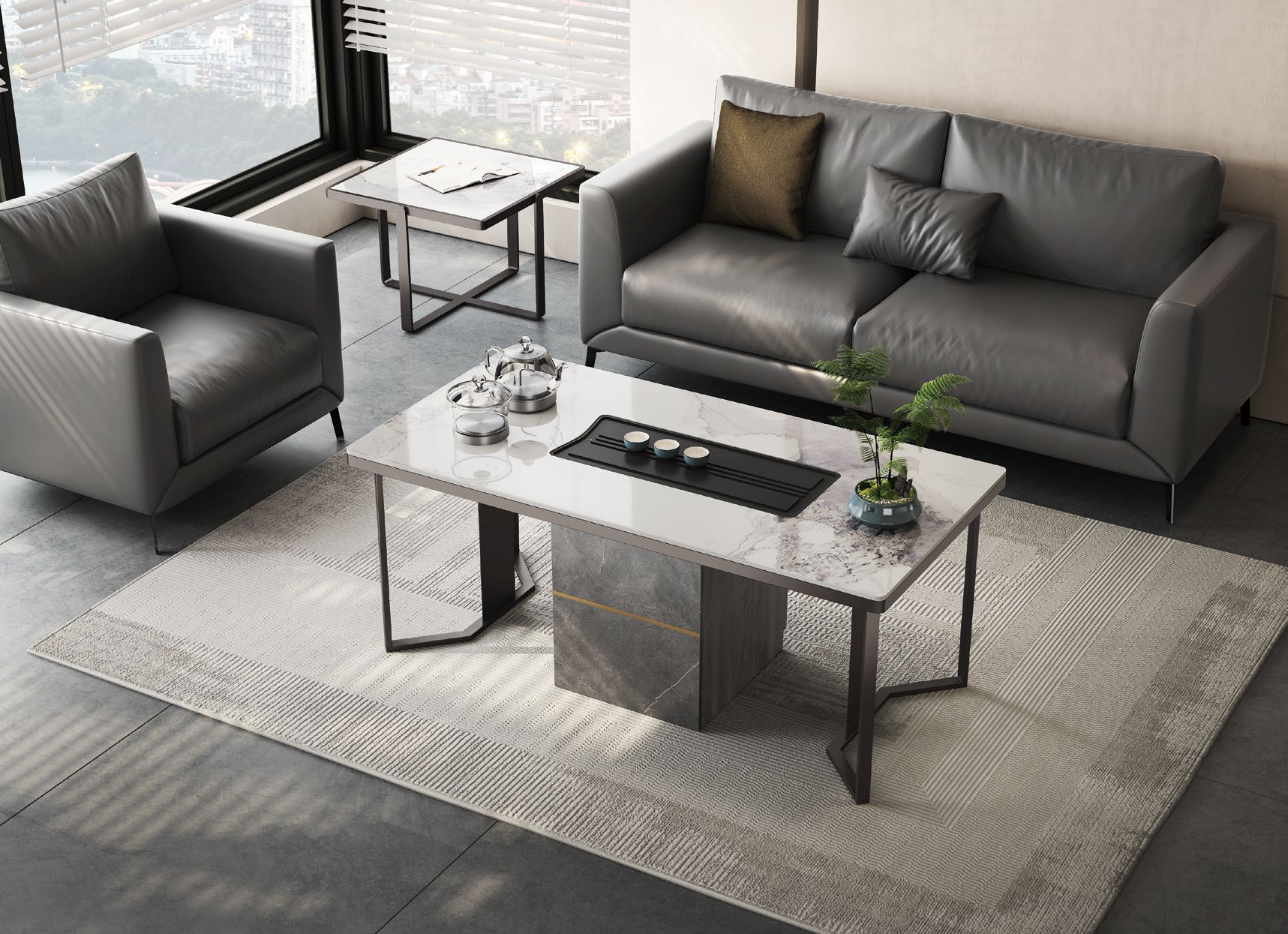 嚴謹周密的茶幾在設計與制作上最大的特點,從茶幾高度到臺面的選材,從轉角的弧線到柜筒與支架的鑲結都體現出設計師與制作者的獨具匠心。