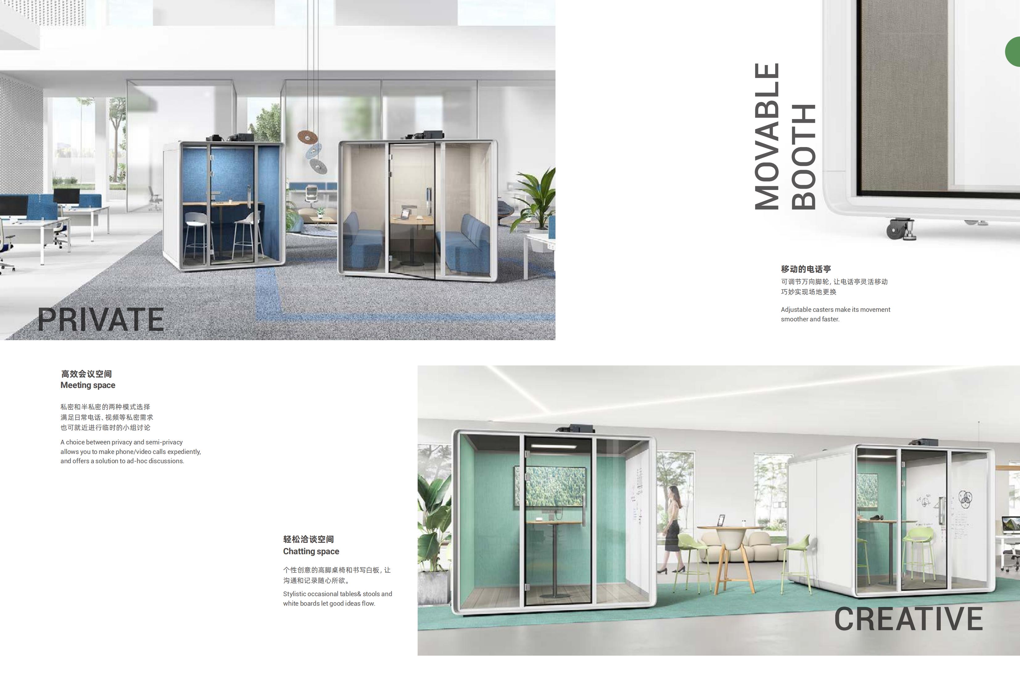 無論電話、接待、洽談還是臨時辦公,開放的公共區(qū)域也能享有私密空間。